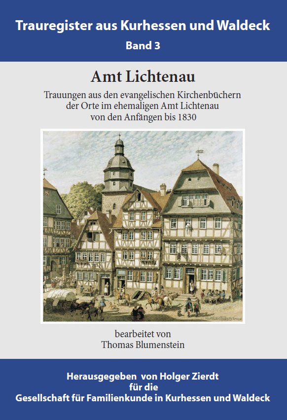 (zur Kenntnis Kopie an Thomas) Hallo, der Trauregister-Band ist bei Books on Demand in Auftrag gegeben. Endgültige bibliographische Angaben: Blumenstein, Thomas Amt Lichtenau. Trauungen aus den evangelischen Kirchenbüchern der Orte im ehemaligen Amt Lichtenau von den Anfängen bis 1830 Trauregister aus Kurhessen und Waldeck, Band 3, 444 S. Hrsg. Zierdt, Holger für die Gesellschaft für Familienkunde in Kurhessen und Waldeck e.V., Kassel Herstellung und Verlag: Books on Demand GmbH, Norderstedt 2012 ISBN 978-3-8482-0678-0 Der Ladenpreis beträgt 25,90 Euro. Die Verdienstmarge beträgt 1,78 Euro/Stück. Das Mastering kostet 39,00 Euro, wie bisher. Die Rechnungen gehen noch an die Adresse von Claus, die dort hinterlegt ist. Müssten wir dann demnächst offiziell ändern. Ich habe eine erste Kleinauflage von 30 Stück bestellt, an die Adresse von Gustaf. Mit ein wenig Glück sind die bis zur JHV da. Es hat vor allem wegen der Rechteklärung des Umschlagbildes alles etwas länger gedauert. Jetzt haben wir ein anderes Umschlagbild, für das die Genehmigung des Abdrucks vorliegt (Bild von Ernst Metz). Ein Bild des Titels anbei (@Mario: Für die Webseite). Viele Grüße aus Hamburg Holger